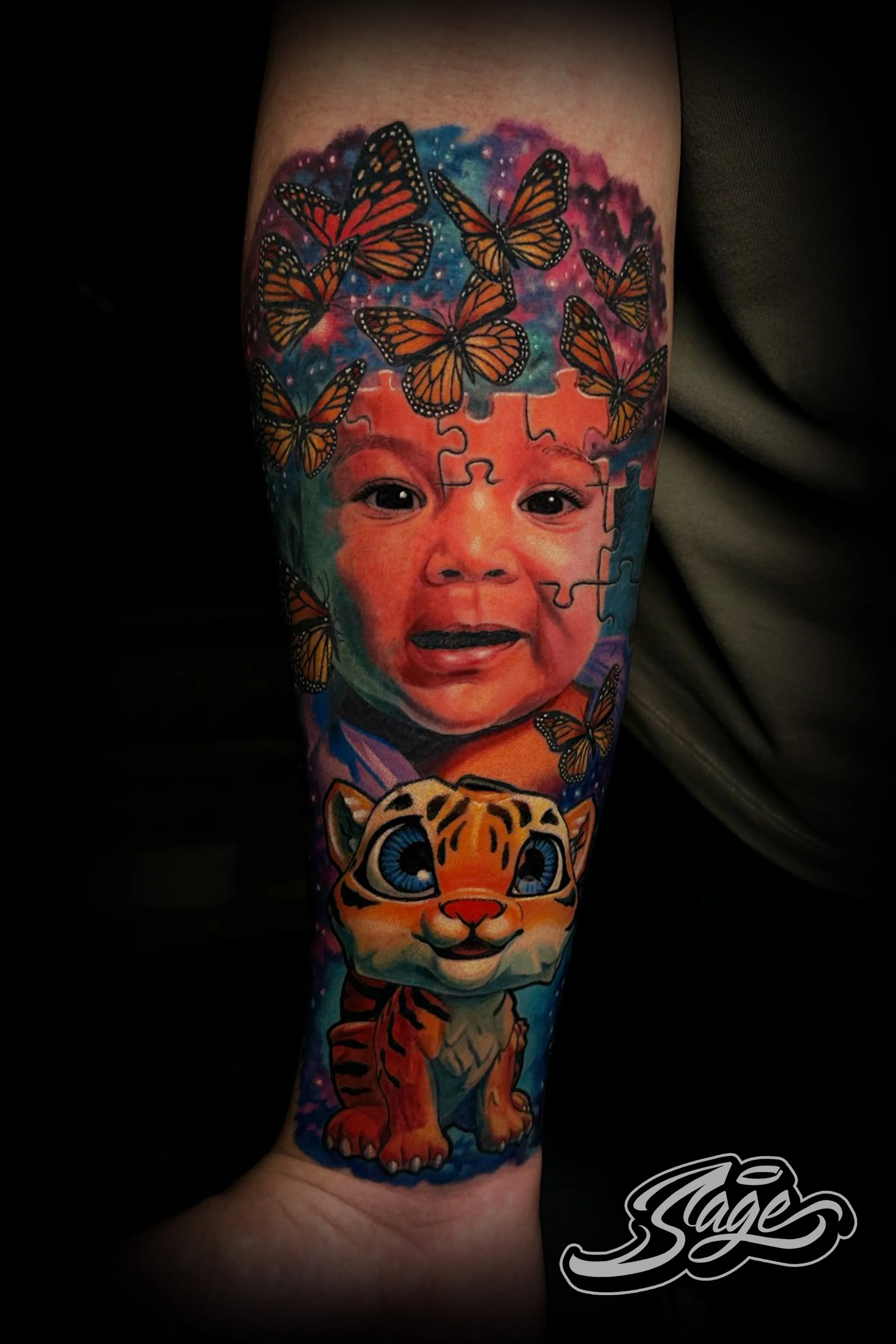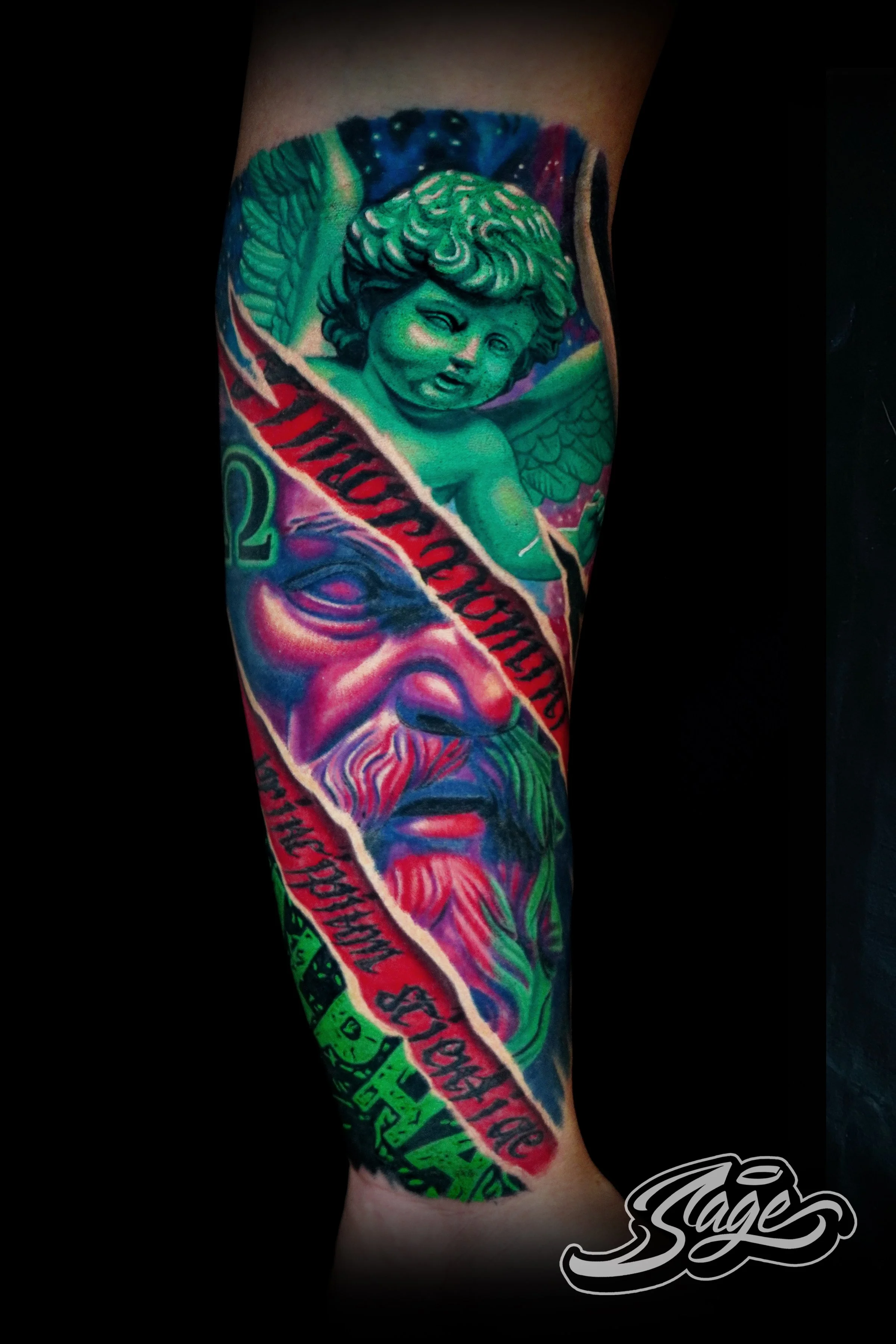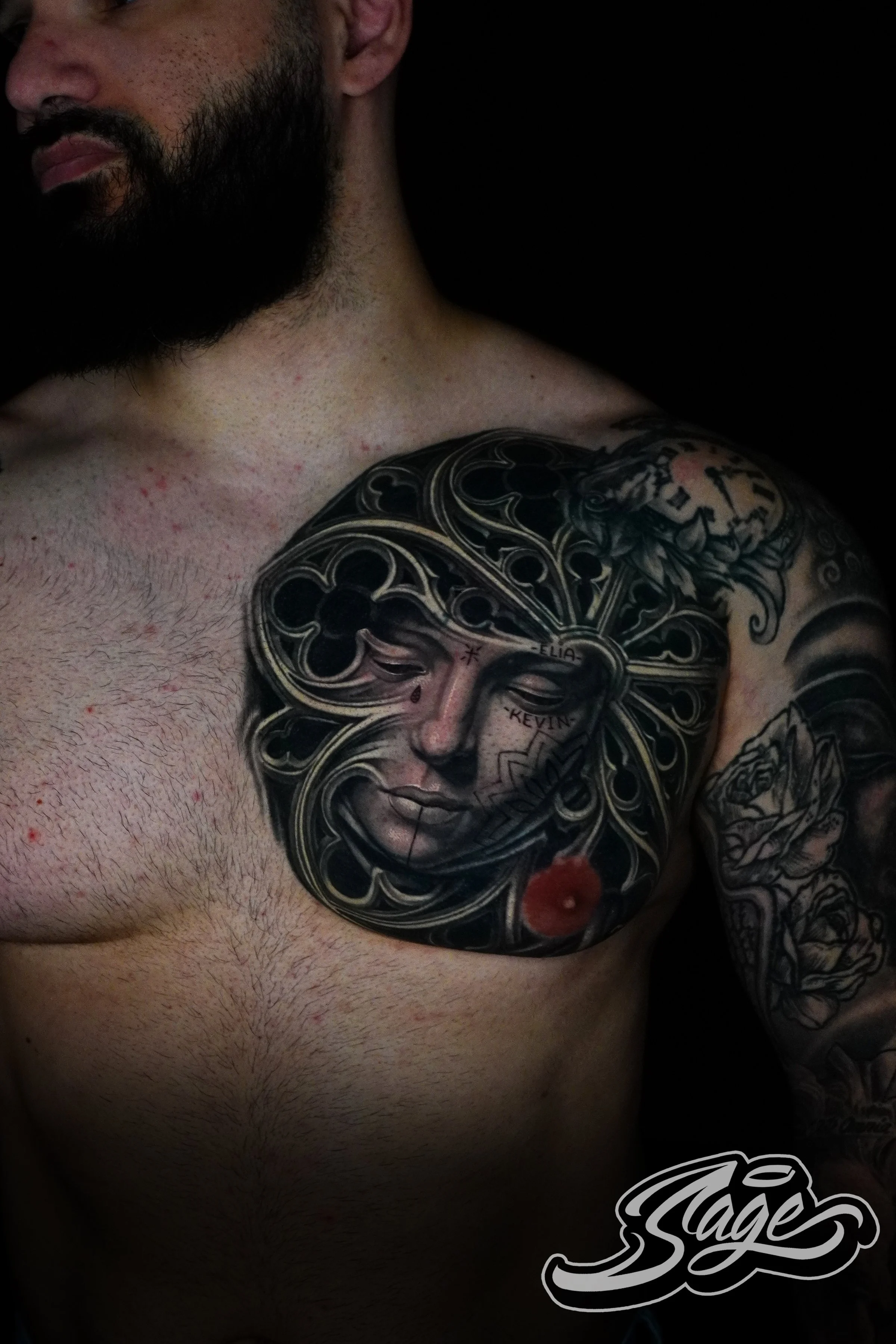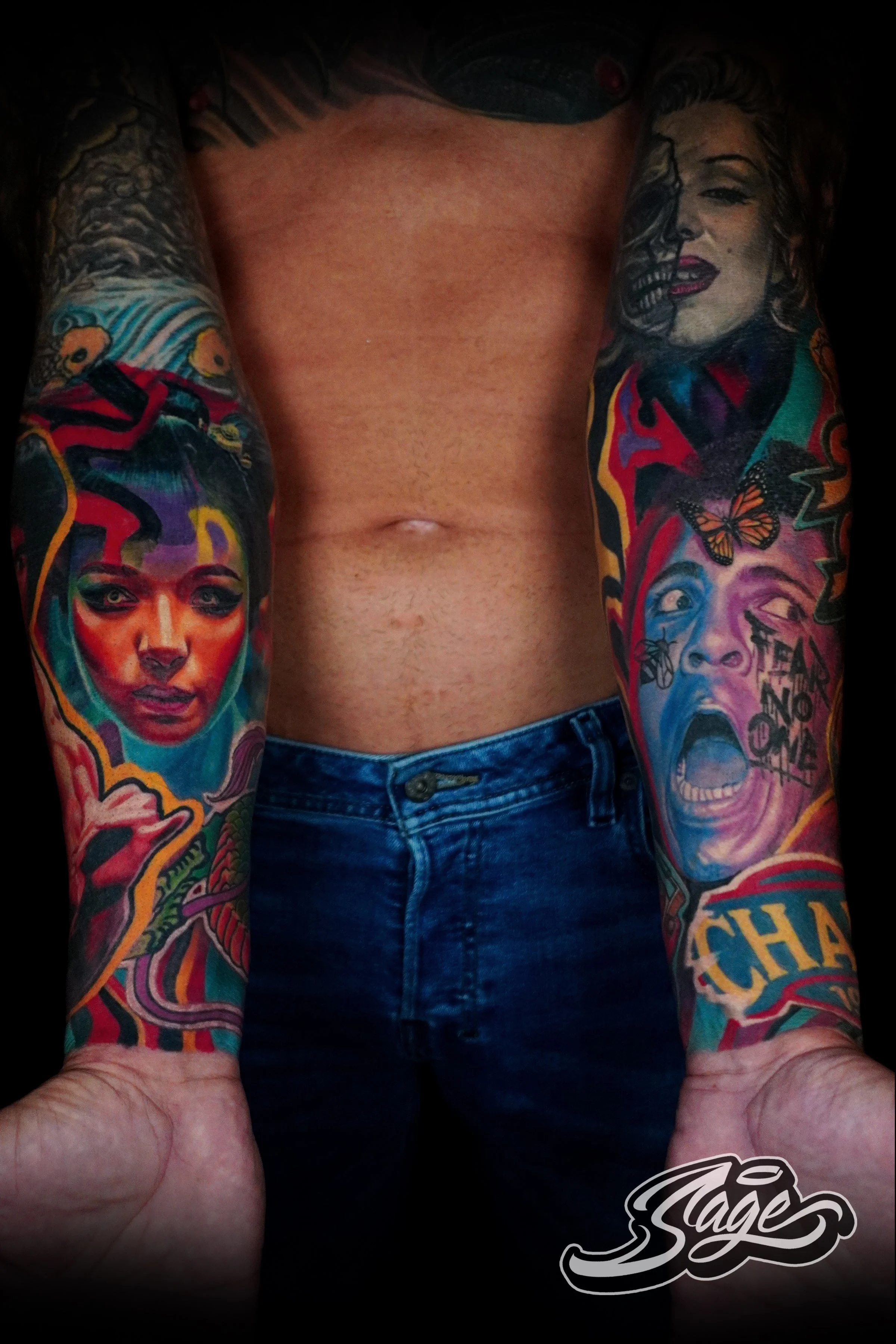 What sets Sage apart is his ability to blend these diverse influences into his own distinctive artistic expression. Every tattoo he designs is more than just ink on skin; it’s a stunning piece of living art, crafted with passion and precision.